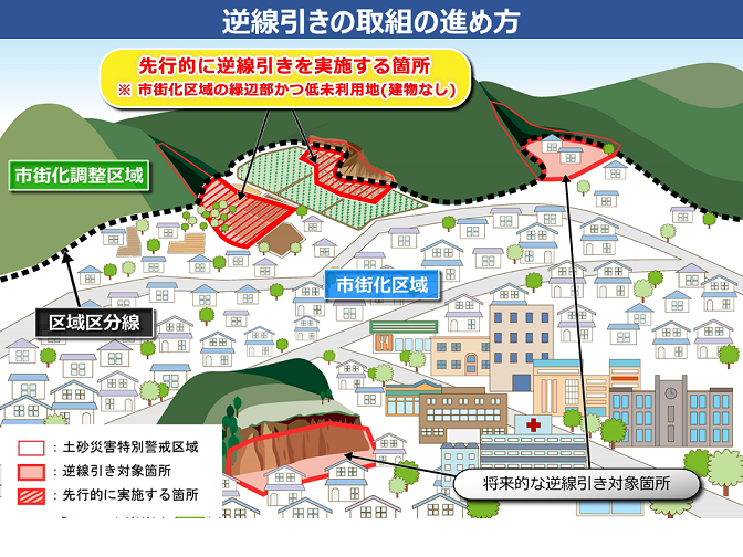 市街化区域内の土砂災害特別警戒区域を市街化調整区域に編入(逆線引き)する取組について