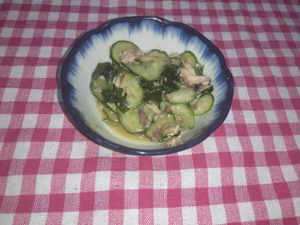 体にやさしいレシピ~きゅうりとわかめのさば缶和え~