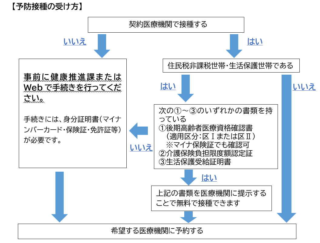 注:同一世帯の代理人が申請する場合は、予防接種を受ける人または、手続きに来られた人どちらかの身分証をお持ちください。