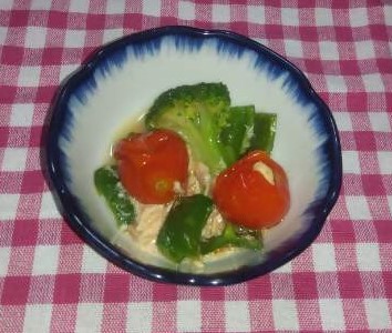 (3)油を切ったツナを(2)に入れ、混ぜる。そのまま味がなじむまでしばらく置き、器に盛り付ける。