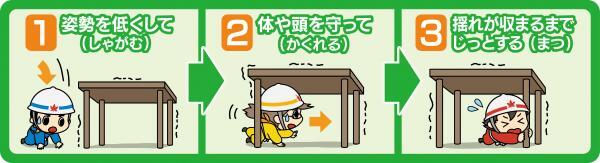 緊急地震速報を実際に見聞きした時に、とっさに身の安全を確保する行動がとれるように、この機会に訓練をしてみましょう。