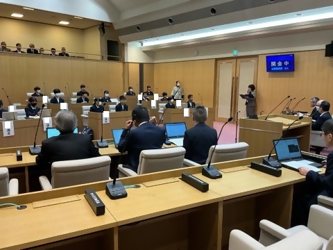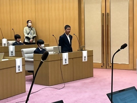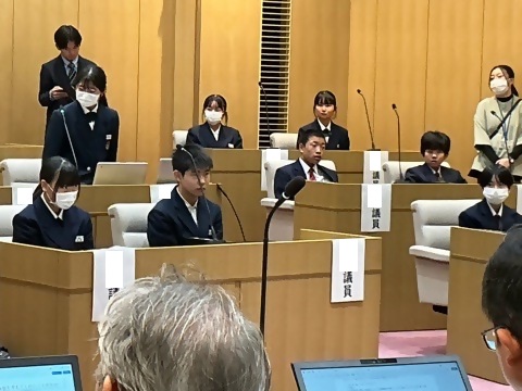 今回は代表の3グループの提案でしたが、議場で緊張しながらも自分たちの思いを表現することができ、役場からの回答を真剣に聞いていました。今回受けた助言等をさらに生かして探究的な学びを深め、ふるさと熊野をさらに盛り上げるために中学生一人一人がこれからも活躍してくれることを期待しています。