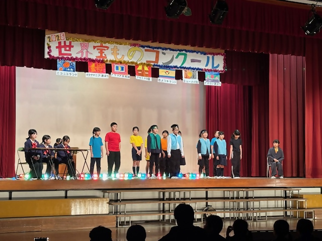 最初に訪れたのは熊野第二小学校。3・4年の劇「帰ってきた 本当の宝ものは?」を参観しました。人間にとって大切な宝物とは何かを問う劇。涙あり笑いあり、まるで吉本新喜劇。最後はみんなでダンス。これも見ごたえがありました。
