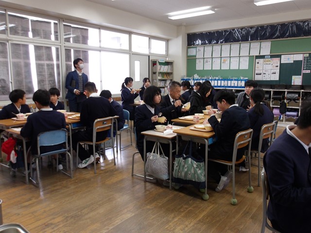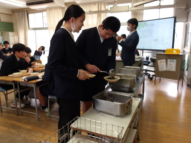 【教育長のページ】熊野第四小、熊野高校の給食交流~温かい給食を楽しく食べる~